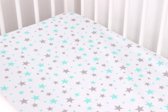 Fitted Crib Sheet Mint Grey Start Baby Bedding Nursery Etsy