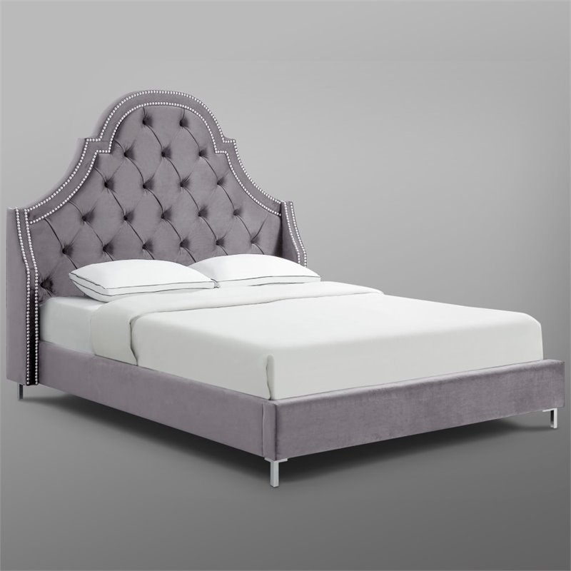 Aaron Grey Velvet Platform Bed Frame Queen Size Tufted