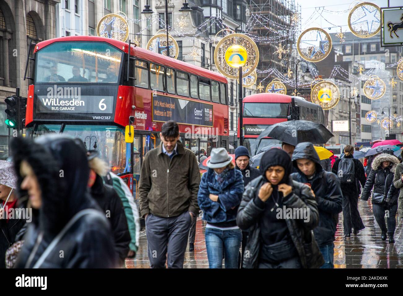 Road Transport Double Decker Buses Rainy Weather London United