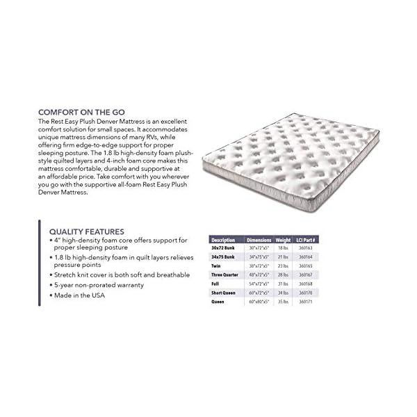 Denver Mattress 360171 60 X 80 X 5 Rv Rest Easy Plush Queen Ebay